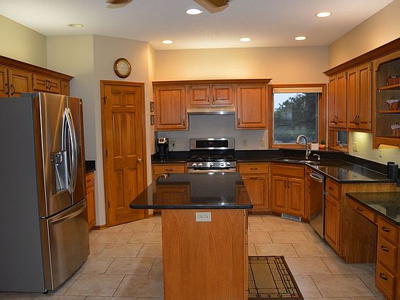 A marble foyer greets you as you enter this 2425 square foot ranch that sits over another 2350 square feet in the completely finished walk-out basement. Four+ bedrooms, four full baths, and a second kitchen in the basement give you plenty of space for family. Open floor plan with beautiful view of our pond with two fountains. Six inch walls and abundant insulation make this home easy to heat and cool. Nine foot ceilings on both floors with trey ceilings in the family room and master suite. The spacious kitchen features Harlan cabinets, a large island, walk-in pantry, quartz counter tops, under-cabinet lighting and stainless appliances. The kitchen and master suite each have their own walk-out patios. The family room and kitchen share a three-sided gas fireplace. Other amenities include private bath off the master suite (with a jet tub), walk-in closet, whole-house vacuum, built-in sprinkler system, water softener, battery-backup sump pump. Spacious three car garage with its own stairwell to the basement. Each of the three garage bays has its own drain (you can wash your car inside!). The garage also has a utility sink, hose spigot and a connection to the whole-house vacuum. Attic over garage is floored for storage. For the mariner in you there's a private dock exclusively for your paddle boat. All this nestled on a quiet cul-de-sac in the NW Allen school district. For more information please call Dennis at (440) 667-1630.