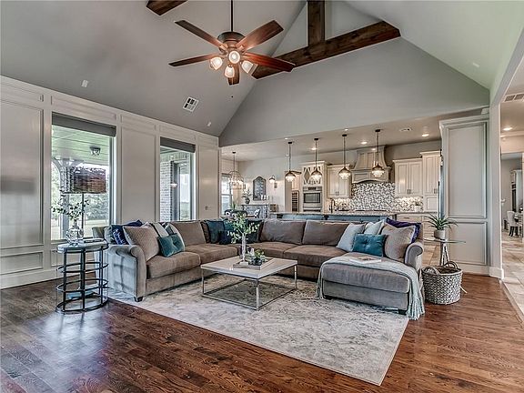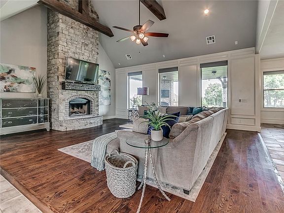 Timeless beauty exists in this well thought out home on 2 Acres (MOL) in award winning Edmond Schools! Spacious double doors greet you leading you into the entryway featuring a stunning formal dining with wainscoting and groin ceiling.The living room features wood floors,a cathedral ceiling with beams,fireplace with rock to the ceiling and picture windows all open to the kitchen.A full size fridge and freezer can be found in the gorgeous kitchen with appliance garage, double ovens,eat around island,eating space, walk in pantry and wet bar with ice maker,wine fridge and pass through window. The private master suite features separate vanities,over sized shower & an unbelievable master closet with built in's with access to the laundry room. The study has french doors, hardwood floors and front yard views.2 secondary bedrooms are located downstairs with jack n jill bath.Upstairs has a bonus room, full bathroom and bedroom with balcony.The well manicured back yard is fenced. Welcome Home.