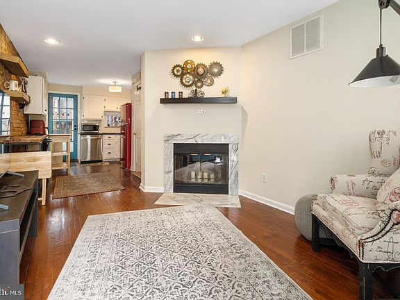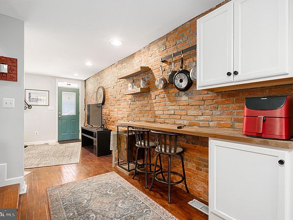 This beautiful home in Historic Federal Hill is full of character and boasts many updates including a New Roof! Open concept living at its best with a classic Baltimore brick wall along the main level, this home is full of charm from the cozy living room with a fireplace, that is currently ornamental but could be made functional, through to the dining area open to the kitchen with a walnut butcher block built-in bar for quick bites, modern appliances, and white shaker cabinets with new handles. On the second level is a spacious bedroom with lots of closet space both in the room and the hallway, a large modern full bath with double vanity and New windows, and stacked laundry in the hallway. Upstairs on the third level is a second bedroom with vaulted ceilings, a closet and half bath. Both the second and third floors have all New flooring. The basement is unfinished with ample room for storage. Enter your private outside oasis through the New kitchen storm door onto the New Trex decking patio where you can barbecue and entertain family and friends this summer. This delightful historic neighborhood setting is located outside the hustle and bustle of the city and is within walking distance to shops, dining, and the waterfront. Schedule your tour today!