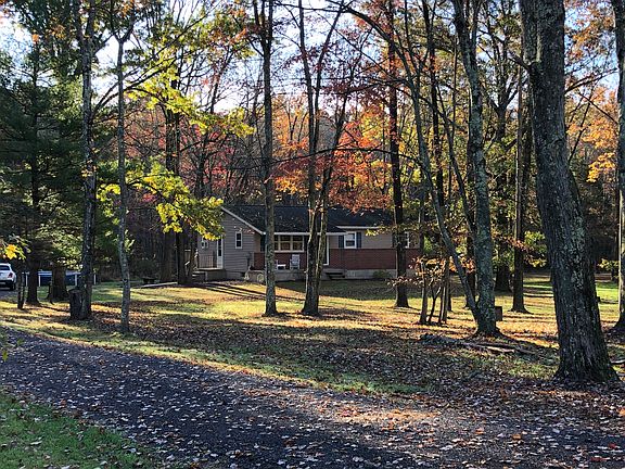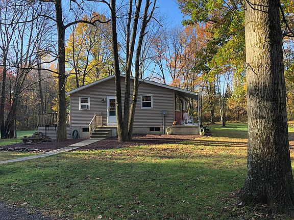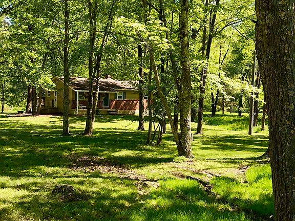 Adorable Ranch Style Home in a Peaceful Woodsy Setting on 1.7 Acres. UPGRADED SEPTIC, Home Inspection, Water, and Septic Testing Completed and Available. A well maintained, 3 bedroom, home offers newly updated bathrooms with whirlpool tub, eat in-kitchen, new hardwood floors and bedroom carpeting. Off the kitchen is a deck which walks down to a Hot tub. The backyard has an above ground pool, fire pit and backs up to the woods for nice privacy. Garage is a Rustic barn with an attached car port with a new metal roof. The house also offers extra room in the basement with a Gas Cooking Stove, Bar and Stools, Keg Refrigerator, Wood Burning Stove and central vacuum. Come see, you will love it.