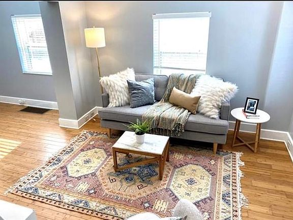 Two bedroom condo with great location. Beautifully renovated condo. Handsome bamboo floors, granite + stainless steel kit w abundant cabinetry. Granite and vessel sink in bath. Freshly painted. New flooring and baseboards in bathroom. End unit -lots of natural light. Spacious private patio + yard. Close to Schiller Park, restaurants + downtown. MUST SEE!