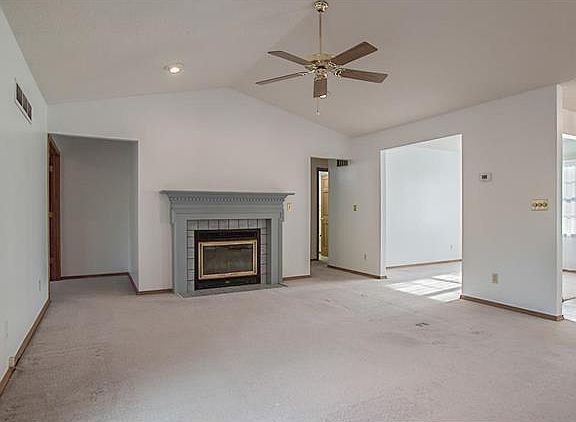Great Ranch home with open floor plan, backs to trees, large deck, patio, full walkout basement with full bath rough in, main floor laundry, separate dining room, office, cathedral and vaulted ceilings, fresh paint, 2017 A/C, 2013 gutters with gutter guards, 2004 roof, 2015 garage door, skylight 2013, bay windows, wet bar, wood burning fireplace, 2 car garage with opener with 6 extra parking spaces, home is very well kept up. Master bedroom with door out to deck, large jacuzzi tub, separate shower. It is a must see for the condition and price!!