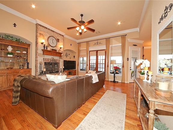 **PRICE IMPROVEMENT** Custom Built Home * Over Half Acre, Built In Play Pool with sun deck * 3Bd Plus STUDY, 3Ba, 3Car Gar. Elec Gate, Hardwood floors, Granite, Master Suite has large shower w Two shower heads, Saltwater Pool with Beach area, Outdoor Living Area with built in grill. Stone Fireplace, Beautiful French Doors lead to spacious backyard oasis, crown moldings, art niches, archways, ceilings fans, pot filler, gas cooktop, gas water heater, Laundry Room has sink and builtin cabinets. Lush Landscaping, Sprinklers, Fruit Trees! Custom built, One Owner home shows pride of ownership! Propane Tank for cooktop, grill n water heater. Wine cooler in kitchen and Patio Shades DO NOT stay. Buyer pays Survey.