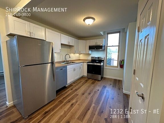 Welcome to historic Chester Terrace - Duluth's first townhouses! Constructed in 1890 and designed by Oliver Traphagen in Romanesque Revival style, Chester Terrace has been a landmark in Duluth's Chester Park Neighborhood for nearly one and a half centuries. These unique apartments feature updated appliances and amenities while retaining their historic character. When we say unique we mean it, almost every unit in the building has a unique floor-plan! The building is home to 40 two bedroom apartments, one one-bedroom and one three-bedroom. First floor units have reserved parking spaces while those on the third floor enjoy access to a shared balcony overlooking Lake Superior. AVAILABLE NOW!! The apartment has been completely renovated from top to bottom, new floors, walls, windows, appliances, fixtures. This apartment is located on the second floor corner unit which lets lots of natural light in! Large off street parking lot, located right in the rear of the building. This apartment features a two level design, one bed and a 1/4 bath on the main floor, one bed and a full bath on the second floor. Great Storage Space within the apartments. Schedule a showing and make this gem your next home. Pets welcome within our guidelines! Tenants are responsible for the monthly rent charges of $1575 as well as the electric utility. Additionally, a garbage fee of $10 per occupant, along with a monthly technology fee of $6.95 per account, are applied directly to your rent charges each month. We provide a liability insurance option at $18 through our in-house policy, though tenants also have the flexibility and freedom to secure their own coverage if preferred. We make it easy! From scheduling a showing, paying your rent to submitting a maintenance request and signing your lease, it's all online. A showing is required before the processing of an application can begin, please wait to submit applications until after viewing the property. Follow us @shiprockmanagement St. ShipRock Management is an Equal Housing Opportunity company. For more information go to FHEO.