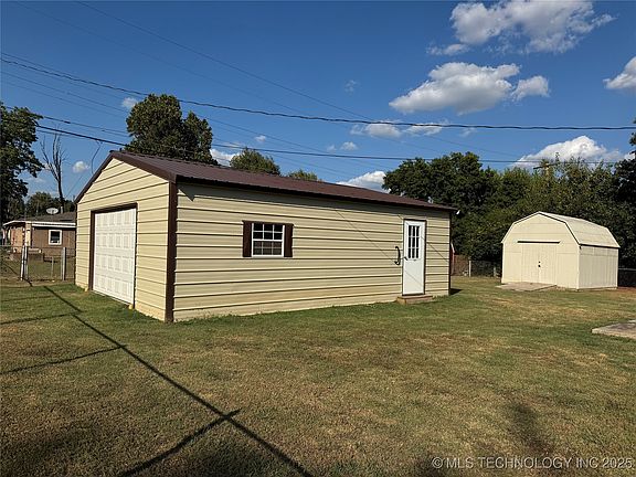 This spacious 2 Bed/1 Bath brick home perfectly blends modern upgrades with peaceful, practical living! New Shop Building just completed in 2025!! Inside, you’ll find refinished hardwood floors, a bright, open living area, and an updated kitchen with stunning stainless steel appliances, ideal for both daily living and entertaining! Remote work has never been more enjoyable with a quiet, dedicated home office space, thoughtfully tucked away to maximize focus and privacy — a rare feature for those relocating from other states to work from home! A laundry/utility/mudroom adds convenience without sacrificing style or space! Step outside to your own private patio oasis — the perfect spot for a morning coffee or an evening cocktail while watching the breathtaking Oklahoma sunsets! The fully fenced backyard with alley access and drive-in gate provides privacy and functionality for pets, hobbies, or entertaining! Added in 2025, the spacious metal shop building offers endless possibilities for a workshop, storage, or hobby space, complemented by an additional 10 x 16 storage building with electricity! Nestled in a quiet, welcoming neighborhood, this home combines charm, practicality, and lifestyle features that make it perfect for both living and working from home! Call to schedule a private showing today on this truly unique property!