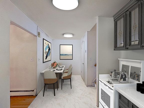 IN RENO MODE!! May 1st. Dimension and layout are available via 3d, but it is prereno/ Bathroom, and steps will be nearly identical to the picture. The kitchen will have new dark gray. Shaker Cabinets--photos are staged. *INCLUDES: Heat, Hot water, Cooking Gas! * First floor with ample sunlight* * 20x10 feet LONG Living Space, for couches, additional Bar/ dining area, or home office * * MODERN KITCHEN (dark gray cabinets and marble top and tiled backdrop) * New appliances* * 2 KING size bedrooms (13x 9.5 feet and 14 x 10.5 feet)* * 5 CLOSETS: Closets are also in the hallway, in the kitchen, by entryway, and each bedroom* *Brand new window* * Recessed LIGHTING in Living Room and New LED Chic Lights will be added to rooms* To obtain an appointment, plz message me with a bit about your situation, and do so if you have faith in the process. Id be happy to provide you with more information re: what reno will look like. If you are curious you can search this address for a past listing of the 3rd floor unit, bathroom and kitchen and lighting will be nearly identical material/style. Given nature of reno plz let me know about your move in situation/timeline flexibility, and if youd still like to see it in present condition to get an idea of space. The 3D is provided to give a sense of the layout, but it will not be delivered in such condition. Only contact number given by zillow or via platform, I will call you! OLD MILL BASIN, Quiet escape. Steps away are BUSES (B47, B82, BM1, B41), Dunkin, Walgreens, schools, parks. minutes to BK College, minutes15 to Kings County Hospital. Easy street parking if you desire. No washer in unit. Pets case by case. vouchers welcome, vale de bienvenida