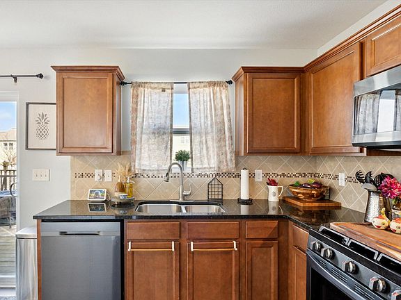 Tucked away on a quiet cul-de-sac, you will find this charming 4 bed, 2.5 bath home. With all new kitchen appliances in 2021 and open concept main floor, this house is great for entertaining. Mud room with cubbies, bench and hooks is the perfect landing place as you enter from the attached 2 car garage. Main floor laundry with new in 2022 washer and dryer located just off the mud room for your convenience. Four large bedrooms including spacious primary suite and second full bath round out the upper floor. Finished basement with egress window is ideal for a play room, office, work out room or could even become a 5th bedroom. There are multiple storage rooms in the basement as well. Outside you'll find a large deck and fully fenced yard. Enjoy the perks of the community pool and playground all summer long. Seller is offering $2k concessions toward buyer's costs.