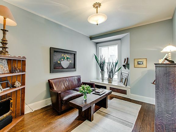 Experience the singular beauty of this landmark Victorian Row House in premier Evanston location. Unique courtyard design brings plenty of natural light with four exposures and a feeling of openness. Oversized front bay window overlooks picturesque Forest Avenue in the heart of Lakeshore Historic District. Spacious rooms and gorgeous vintage architecture. Hardwood floors, butler's pantry, built-in bookcases, lattice windows and Inglenook highlight the home. Four bedrooms on 2nd floor with remodeled baths; one ensuite. Kitchen in good shape but could use updating-bring your imagination. Clean and dry unfinished basement offers untapped room to expand. Plenty of storage including large, unfinished half attic. Fenced backyard on extra deep lot offers PVT, peaceful garden setting with lovely perennials and brick paver patio. 2 car garage. Unbeatable location close to downtown Evanston, Lake Michigan, Dempster St. shops and easy access to the city, Lake Shore Dr. and Metra/El/buses