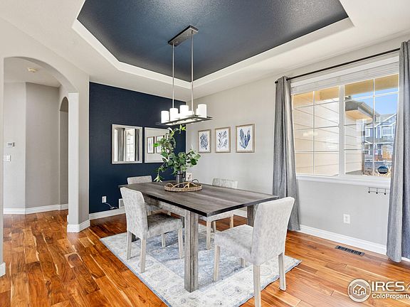 This home is absolutely stunning! Sellers are offering $10,000 in Seller concessions. It has been upgraded top to bottom & is located on a lrg corner lot in SW FoCo that is surrounded by more than 1,000 acres of protected open space. As you enter the home, you will be greeted w/ cathedral 20+ ft ceilings & top to bottom windows boasting amazing natural light in the spacious living room featuring a 2- way fireplace. The home has new Acacia wood flrs throughout & offers a lrg main level office, addt'l family room & formal dining room. The kitchen is a dream come true, showcasing a lrg white quartz waterfall center island, custom Kraft slow-close white cabinets & SS appliances, including a dbl oven. The grand dbl staircase features custom rolled blue steel railings & 3-yr-old carpet. 3 bdrms & a loft will be found upstairs, including the primary suite w/ views of the foothills. 5-pc bathroom w/ jetted tub & walk-in shower displaying 7 shower heads. The walk-in closet has custom shelving. The other 2 bdrms both have their own attached bathrooms & walk-in closets. The finished bsmt is equipped w/ a full, custom bar w/ refrigerator, dishwasher, sink, & microwave! 4th bdrm, flex/living space & a huge craft room including a shower will also be found downstairs. Impress your guests w/ the spacious bathroom downstairs, featuring a flr to ceiling mosaic tile walk-in shower, dbl sink, toilet, & urinal! When you venture out back, you will notice the stamped concrete patio, raised garden beds & incredible views of the foothills. Additionally, the home backs up to protected open space & includes a dog run on the side. New HVAC system & roof was replaced in 2013 w/ 30-yr shingles. Bring your toys & tools & store them either in the backyard shed or in the lrg 3-car heated garage. This neighborhood has no metro tax, & the residents enjoy low HOA costs that cover trash, pool, tennis court, basketball court, 2 parks, & endless greenbelts & trails! Pre-inspected for peace of mind.