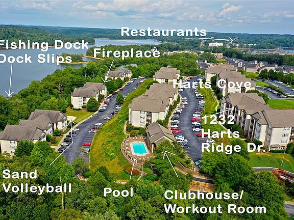 4 bed 4 bath on the top floor located just just across from the clubhouse and pooland a very short distance to campus and excellent opportunity for a game day set up! Easy access to all Clemson sports facilities. This unit has vaulted ceilings in the living room and is in excellent condition. Harts Cove is pet friendly with a clubhouse, pool, shuttle to campus, fitness center and community dock on Lake Hartwell. HOA includes cable and internet. Unit has recently been painted. Also you can rent a bot slip year to year depending on availability. Master deed and rules/restrictions are available from APM website wwwapmclemson.com