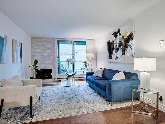 This beautiful and bright West End condo has it all and is the perfect place to call home.Located in a well-run strata building on a quiet street steps from Sunset Beach with 95 WALK score.Updated unit w/ stunning reclaimed hardwood floors,an open kitchen,and stone countertops.The very spacious layout provides room for full-size furniture and a woodburning fireplace, perfect for cool evenings.The second bedroom comfortably fits a queen bed or doubles as a nursery/office space. The south facing balcony with room for BBQ and patio furniture, extra large easy access storage locker, and privileged parking spot location make this suite unique. This building has a breezeway with a communal garden and grapevines that contribute to the gated & secure surroundings.