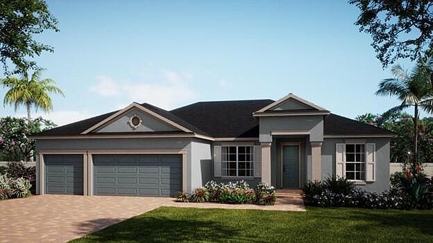 Our beautiful Briella plan includes 4 Bedrooms, 3 full Baths, and 3 car Garage and is located in desirable Country Club Estates. Spacious Great Room overlooks covered rear Lanai - perfect for entertaining and outdoor living. Beautifully upgraded Kitchen features 42'' upper cabinets with crown molding, quartz countertops, tile backsplash, and stainless appliances. Tile flooring featured throughout main living areas, with carpet in bedrooms. Our High Performance Homes offer energy efficiency and home automation technology. This gated community is a hidden gem in NE Palm Bay near Palm Bay Road and I-95 with quick access to Hammock Landing, major employers, schools, shopping centers, and Restaurants. The mature trees in the community provide natural beauty and shade. Community is just 20 minutes to the the beach!
