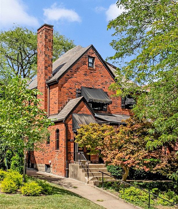 Nestled on a storied street, this enchanting brick home blends classic craftsmanship with inviting charm. A covered front porch with awning welcomes you inside, where hardwood floors grace the main level. A decorative fireplace adds warmth, while stained-glass windows—especially a vibrant piece by the front door—lend character and history. The kitchen includes a cozy breakfast nook, perfect for casual dining. The spacious primary bedroom features an en suite bath, and while the second floor is carpeted, hardwood lies beneath. The third floor, plumbed for a bathroom, offers a renovation opportunity to create a private retreat or fourth bedroom. Outside, a rare, expansive flat yard is ideal for gardening, entertaining, or relaxing. Just minutes from CMU, Oakland, and nearby parks, this home offers a perfect mix of peaceful neighborhood living and city convenience—a chance to own a piece of architectural heritage ready for your vision.