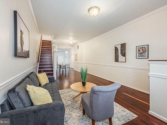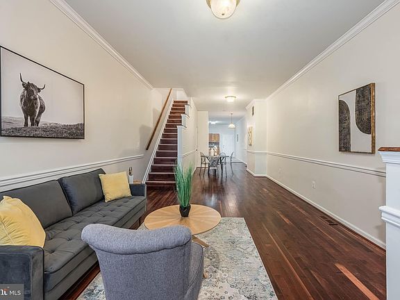 INCREDIBLE VALUE FOR THIS SPACIOUS END OF GROUP UPDATED HOME! Features include wood flooring throughout, a spacious living room & dining area with chair railing & crown molding, a large kitchen with ample cabinet space, a main level full bath, upper level with 3 generously sized bedrooms & a 2nd full bath, a full basement with laundry area that's perfect for storage, and a rear patio!