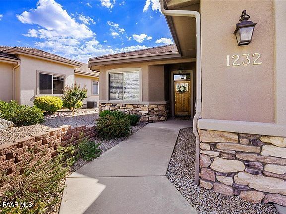Discover this beautifully renovated home in the gated Creekside neighborhood of Prescott Lakes, perfectly designed for comfort and style. This single-level, split floor plan residence boasts 9+ foot ceilings and includes a secondary master ensuite bedroom, making it ideal for either a primary residence or an easy lock-and-leave second home. The kitchen is fully updated with a reconfigured oversized island, sleek soft-close cabinetry, quartz countertops, and a modern tile backsplash, combining functionality with a fresh, contemporary aesthetic. The open great room is perfect for entertaining, with a spacious dining area and a cozy stacked stone corner fireplace to enjoy during cool winter evenings. Expansive views from the living space and large back deck reveal a scenic backdrop.