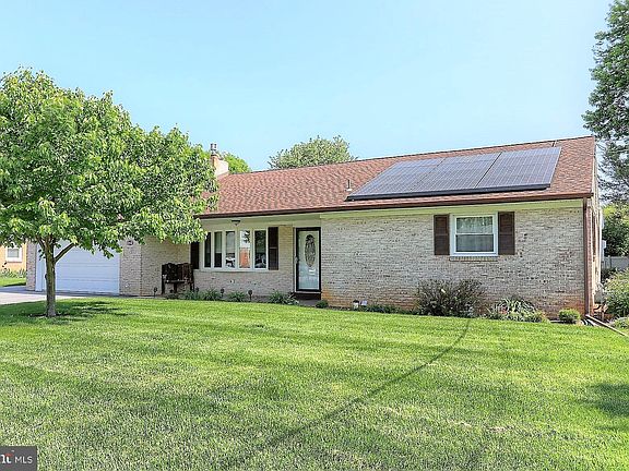Walk in this updated well-maintained 3 bedroom 2 1/2 bath ranch home to a great size living room with stone gas fireplace, an upgraded kitchen with lovely granite countertops and dining area that leads to an enclosed sunroom with skylights, ceiling fan and gas fireplace. Additional features include energy saving solar panels (owned by seller) for electric service, hardwood floors, ceiling fans in most rooms, bathrooms with heated floors and convenient main level laundry. Walk out the sunroom to a beautiful patio with an electric retractable awning that works with the push of a button and has a natural gas line to a gas grill and firepit. The finished lower level has a large family room, kitchenette area, half bath and workshop with enclosed outside entrance. Fenced in rear yard with garden area and shed. Attached 2 car garage and additional off-street parking.