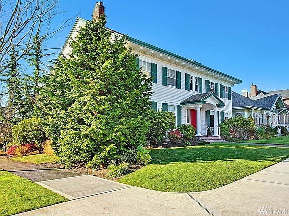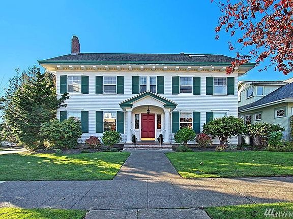 Historic stately gem w/ classic elegance & modern amenities. A grand masterpiece on corner lot. Tastefully updated preserving classic charm. Modern-day amenities include a sumptuous master suite w/walk in closet, modern kitchen w/granite, & a sunny great room w/ cathedral ceiling. Puget Sound, island & mountain view from several rooms. 5 bedrooms, all w/ en suite bath plus main floor powder room. 3 levels + basement apartment w/exterior separate entrance. Charming patio & gardens.
