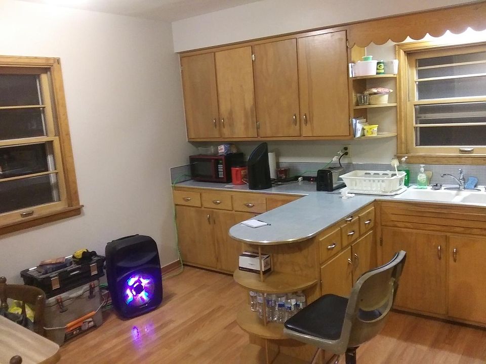 This is an upper of a house and has quite a bit of space. -- Big beautiful kitchen -- Lots of cupboard space -- Plenty of counter space -- Laundry located within the apartment -- Laundry equipment is included in the rent -- Large extra room for storage -- Average sized living room and bedroom