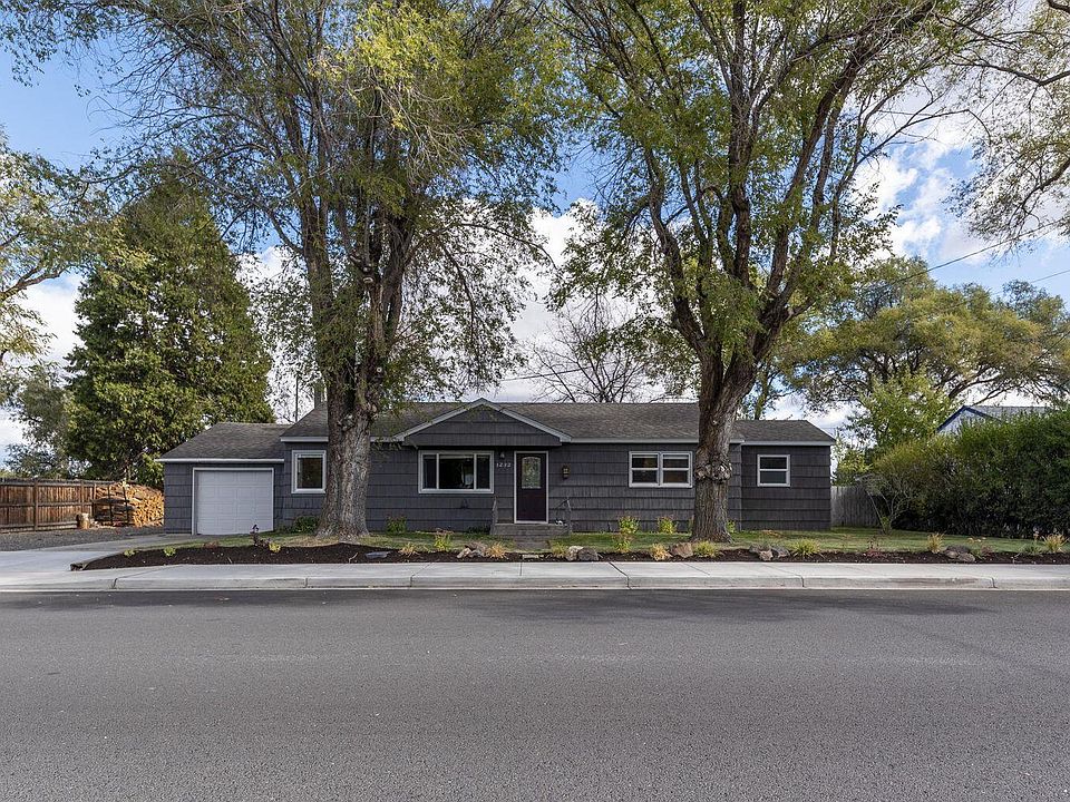 Single-level home in the heart of SW Redmond. This home features a living area with a woodstove & lots of natural light, along with a spacious updated kitchen, including SS appliances, tile flooring, and plenty of cabinet space, with French doors in the kitchen that open up to a sunroom. Three bedrooms & two full baths include a master suite with dual closets & ensuite bathroom. Other amenities include forced air gas heating, A/C, and real wood floors throughout. Situated on a ¼ acre lot with a large covered patio (wired for a hot tub), and a fenced in dog run. This yard is a gardener's paradise, with an 800 sq ft vegetable garden, and chicken coop, along with raised beds in the side yard, fruit trees, berry bushes and mature shade trees. Plus a good-sized single car garage, storage shed, wood shed, and alley access to the back of the house. Plenty of room for an RV & toys and has the potential for an ADU. Great central location, close to schools, shopping, restaurants, and trails.