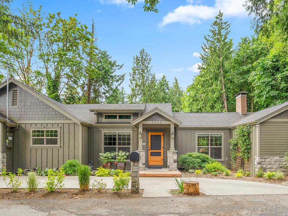 Completely furnished: walk in ready including towels, linens, pots, pans, spices, etc. All you need is clothes in this newly constructed high-end home on Marquam Hill near OHSU Hospital campus. Spacious master suite with California King bed. Master bath with soaking tub, large shower and walk in closet on main floor. Additional two full bedrooms with queen beds and another full bath, and a fully equipped gourmet entertainers kitchen. Main floor also includes a living room with gas fireplace, and a laundry with large capacity LG washer and dryer. Beautiful outside deck with lots of light and tree views. An additional bedroom with queen bed downstairs, as well as a separate big screen TV lounge area also downstairs. Property on a very private and quiet street, and close to downtown. There is a separate ADU at the rear of the property sometimes occupied by the owner. The garage is not part of the rental. High end and fully furnished; walk in ready. All utilities included: trash, water, electricity, gas, high-speed internet, sewer and water. Flexible on term. Must have good credit and strong references.