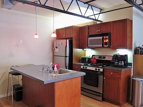 Come check out this unit is a unique & modern space. It includes a fully equipped kitchen, hardwood flooring, and large windows. The bedroom houses a functional walk-in-closet for your storage needs. There are also features such as an in-unit washer and dryer, contemporary track and under cabinet lighting. The kitchen island and bar seating make for a functional open floor plan. Additionally, there is one indoor garage parking space. A must see!