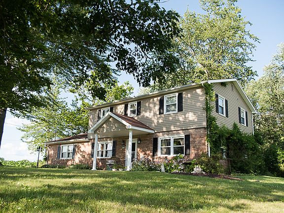Beautiful 4 bedroom, 3 bath home on 1 acre! Hardwood floors. Spacious Master bedroom with half bath and new vanity. Eat-in-kitchen with breakfast bar and appliances that stay. Formal living room. Family room/Dining room combination with brick fireplace. Vinyl replacement windows. Nice rear deck for enjoying the peaceful 1 acre setting. Partially fenced rear yard with 3 storage sheds. Two car garage.