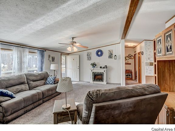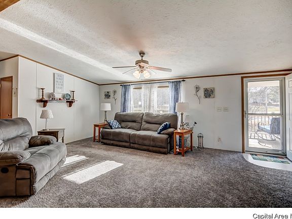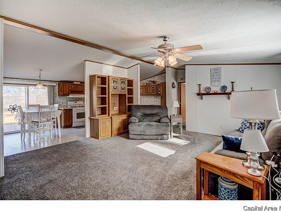 Gorgeous manufactured home on 9 lots! This lovely home features 3 bedrooms and 2 full baths and an open concept for the living, dining, and kitchen. Patio doors off the dining room opens up to a great back porch that overlooks a spacious back yard that backs up timber. Good sized shed is in back to for extra storage! This home has been well kept and is turn key, ready for new owners! Modern bedroom sets, outdoor furniture stay with the property! 4 Lots in back are separate parcel but being sold with this property.