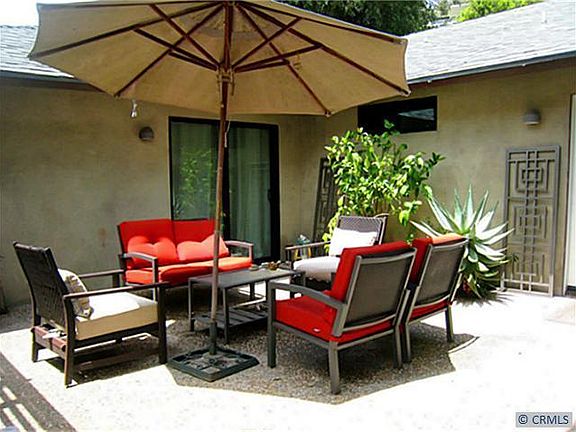 Lovely traditional style two story family home which has been beautifully remodeled. Located on a quiet cul-de-sac street. A gated front courtyard/patio area greets you. Popular open floor plan with family kitchen. White marbel kitchen island and counters. Main level master bedroom has a high ceiling, skylights and a great master bath, with an attached office. 4 bedrooms upstairs. Dark hardwood floors in living area with high ceiling which opens out to a large park like, part grass, part concrete patio yard lined with mature trees. Perfect family home and neighborhood.