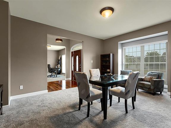 Stunning 1.5-Story in the sought-after Talbridge subdivision! This home boasts 4 Beds, 3.5 Baths & 3500+ square feet of living space! Highlights: new carpet (2024), newer roof (2019), walkout basement, security system, 3-car garage. Gleaming hardwood floors in the Entry Foyer! Office/Den & formal Dining Room, that leads into the 2-Story Great Room featuring a wall of windows, WB fireplace & built-ins. Spacious Kitchen featuring SS appliances, 42” cabinets, double ovens, butler pantry, ceramic tile flooring, walk-in pantry & large island with breakfast bar that opens to the Hearth Room with WB fireplace & adjacent breakfast nook with bay window. Main Floor Master Suite with large walk-in closet & adjoining luxurious Bath with tile surround shower, double vanities & soaking tub. Convenient Main Floor Laundry Room! Relax outside on the composite back deck & enjoy the large, level yard! Location could not be better – close proximity to restaurants, shops & hwys!