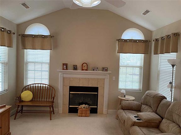 Fantastic two bedroom Villa in the desired Stone Bridge Villas community. No more fighting stairs...enjoy this first floor master bedroom with adjoining master bath with grip accessories. Large eat-in kitchen with golden maple cabinets, opens up to a bright and cheery great room with gas fireplace. This spacious Villa offers ample storage in all closets and laundry room, which sits just off the kitchen. Enjoy plenty of fresh air and outdoor living space on the large fenced patio. Owners will also enjoy the many amenities of Stone Bridge, including: clubhouse, community pool, fitness room, and access to catch and release pond. Association fee includes water, sewer, trash, grass mowing, landscape, leaf removal, exterior building maintenance, snow removal, fire-hazard-liability-exterior building insurance (except personal possessions), operation of pool and community center. All this and more make this Villa a BIG VALUE in O'Fallon.