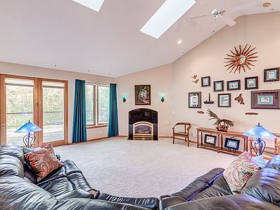 Call Duane for a private showing at (319) 573-8652 CURRENT PROFESSIONAL APPRAISAL COMPLETED Amazing custom built Steel Framed home in Amana featuring "Green Technology"; Handicap accessibility; High-end finishes; 4-Acre private wooded Lot; Large stocked pond; 2400 SF Steel Framed Outbuilding. Located just around the corner from the Amana Golf Course and Colonies. NO COVENANTS!! Additional acreage negotiable. . Nature lover's paradise! Rare and unique opportunity to live in a wooded wonderland full of wildlife such as deer, turkeys, ducks and more! Everyone who comes down the drive is in awe at the natural beauty. Bright and open home nestled in the timber with a beautiful pond stocked with hybrid bluegill, bass and catfish! The brick and steel sided house is framed in red steel and wind rated to 110 mph. There are no load bearing interior walls upstairs - steel purlins throughout the home. Main Level includes 14' ceilings in greatroom and 4-Seasons room. . Master bedroom has a walk-in closet, attached office, and en suite full marble bathroom including double sinks, shower, jetted tub, separate toilet room, small refrigerator and TV. Two marble faced Xtrordinaire 24 kt gold fireplaces - one gas and one wood burning. Eight skylights. There is geothermal in floor heat throughout the home as well as the attached three car garage and geothermal SpacePak air conditioning in home and garage. Garage also features floor drains and hot/cold water. . Lower level has 2 bedrooms, one with large walk in closet, full bathroom in between the bedrooms, storage/wine room, safe room, great room, and game room. Rural water. Total house fire extinguishing system. Front door is wheelchair accessible. Two level steel framed deck off main level.(20x32 steps down to an 18x16) on south side of house which overlooks the pond. Downstairs has a concrete patio (20x32) and walk-out French doors. . There is also a 2400 sq ft steel framed insulated outbuilding with geothermal in floor heat. It includes living quarters with a 3/4 bath, upstairs storage, washer/dryer hookup, utility sink, 2 electric hoists on a steel beam, air compressor, parking for 6+ vehicles, 350 sq ft outside patio plus an additional 80' x 60' building site/parking lot area - great for an expanding home business!! . See the 3-D virtual open house tour of this beautiful home below! (More Facts & Features) FSBOHOMES.COM offers FREE buyer support including an on-site real estate attorney who will answer questions and complete a purchase agreement.