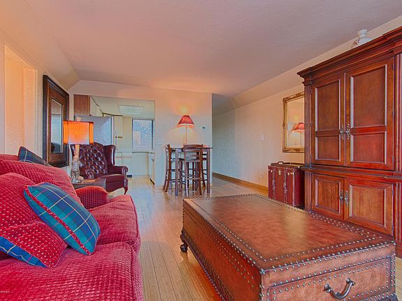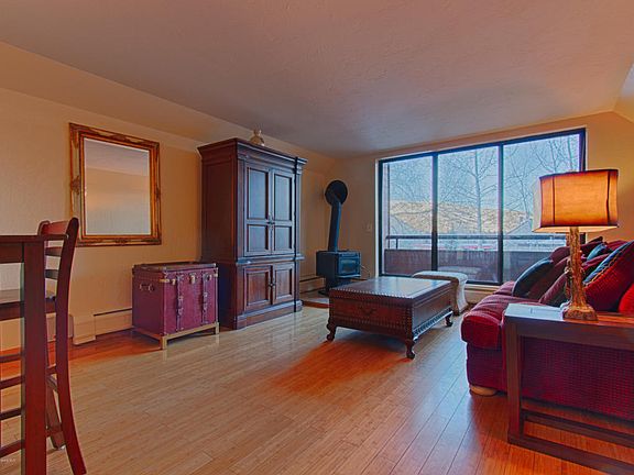 Available starting December 1st. Top floor 2 bedroom, 1 bath unit with a deck and views of Aspen Mountain. Bamboo floors and updated kitchen appliances. Open living area with a wood burning stove. Located near the Hunter Creek and Smuggler trail system. Enjoy the hot tubs, pool and tennis courts just across from the building. An easy walk to downtown or take the RFTA bus which stops in front of the complex. 2 unassigned parking spaces. Storage units available for lease from the HOA, on a space available basis. No pets, no smoking. $3,995/mo + utilities(Avg $150/mo) for a 12 month lease.