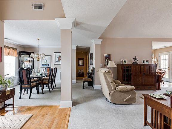 Sought after 3 bed/2 bath stepless ranch on large level lot w/ 2-car garage. Well maintained split bedroom floorplan, spacious secondary bedrooms. Light/bright open floorplan w/ large family room, vaulted ceilings & fireplace. Separate formal dining room. Large kitchen w/ lots of cabinets & view to eat in breakfast area. Big walk in laundry room. Spacious master bed & bath. Ring cameras. Wheelchair accessible w/ wide doors. Serene backyard setting. Swim/tennis community conveniently located near interstates, shopping & schools. Don't miss out on this rare opportunity.