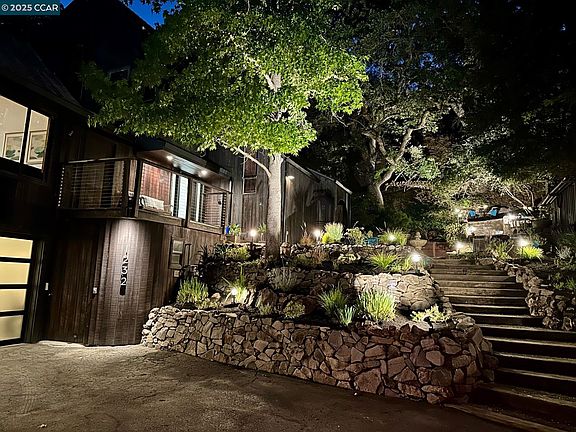 1232 Woodborough Rd is tucked away at the end of a private road in a peaceful wilderness amongst native California oaks, a redwood grove and rolling hills. This 6 BR/3.5 BA home boasts approx. 3,930 sf over 3 stories, and is situated on an acre of land. An inviting entry leads to a massive LR w/a fireplace, soaring ceilings & skylights, a library nook and formal dining. The updated kitchen with S/S appliances (new MW & oven), a Boos Block island, subway tile, and underlit cabinets flows seamlessly into the great room, also with soaring ceilings and large windows, allowing for interactive living and entertaining. The upstairs primary suite has its own fireplace, a large walk-in closet, new carpeting and a beautifully updated and privatized bathroom. Two BR’s sit at the base of the stairs below with their own tastefully updated bathroom. Two more BR's and a bathroom are at the other side of the home on the main floor, and a final BR is downstairs, currently used as an office/exercise space. The 3-car garage features a charging station, and tons of storage! Near a trail to access the Springbrook Pool and Acalanes HS. Springhill Elementary and Briones Park Trail are a short distance away. Bus stop nearby for Stanley Int. Minutes away from both downtown WC & Lafayette, BART/24/680.