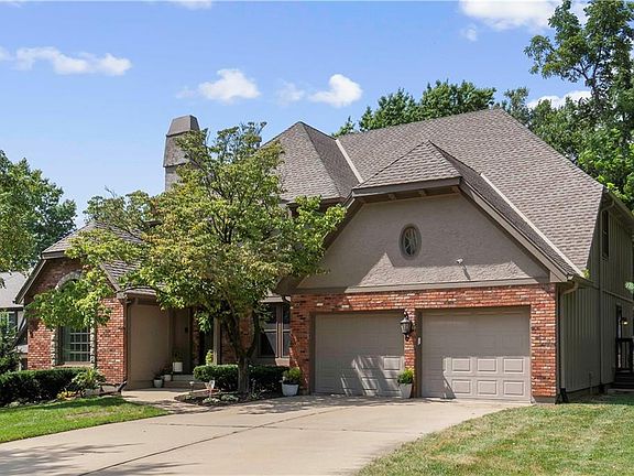 This stunning 1.5-story home in Hunters Ridge features 4 bedrooms, 4.5 baths, and sits on a large corner cul-de-sac lot. Step into the inviting two-story foyer, leading to a private office with French doors and built-ins. The main-level primary suite offers a cozy sitting area by the fireplace, a bathroom with double vanity, and a walk-in closet. The vaulted living room, with wood beams and one of four fireplaces, connects to the open kitchen with granite counters, white cabinets, and a bay window. Newly refinished hardwood floors run throughout. The finished walk-out basement, perfect for entertaining, includes a full kitchen, pine wood walls, built-ins, and a full bath, opening to a patio and fenced yard with a sprinkler system. Enjoy your morning coffee on the deck under a beautiful pergola. Upstairs, 3 large bedrooms with walk-in closets and a loft provide ample space. With newer windows, HVAC, a water heater, fresh paint, and updates like custom garage organization, this home is move-in ready. Just minutes from parks, shopping, and restaurants, blocks to Leawood elementary & middle schools!
