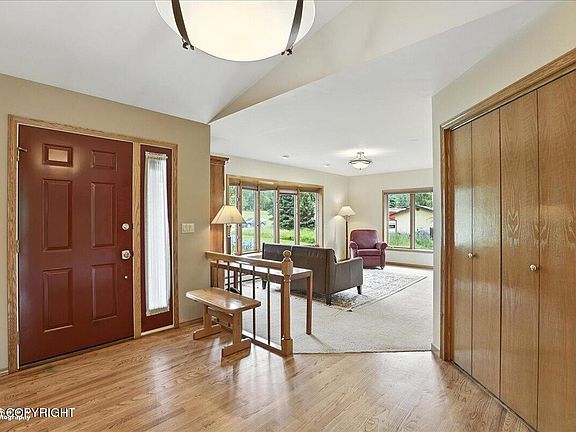 Beautifully maintained South Anchorage home featuring 3 (of 4) beds, 2.5 baths, on the 2129 SF main level. Oversized garage fits 2 cars with extra storage. South facing kitchen and family room with access to large deck overlooking the lush backyard with productive fruit trees & berry bushes - perfect for taking advantage of sunny evenings! Newer: roof, gutters, driveway, primary bath, & more