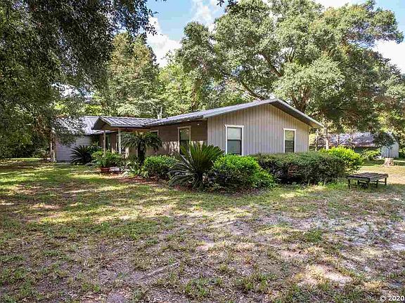 Just what you have been waiting for, an 1824 SF home that is move in ready on 6.48 acres with a 2640 SF workshop plus a 1120 SF pole barn - both with concrete floors and 220 power! The property is well manicured and stunning with some open pasture areas and some mature hardwoods for shade and privacy. The home sits way back off the road, has a recently installed metal roof, a great open floor plan loaded with windows to let the natural light inside, a vaulted ceiling in the huge great room with a custom slate stone floor and windows all around for views of the deer and other natural habitat that come to visit! All this plus a great location only 5 mins to High Springs or Newberry and 25 minutes to Gainesville. This property is the perfect location for someone that wants privacy but still living near town. Did I mention High Springs School zones and no HOA? Come explore the possibilities!