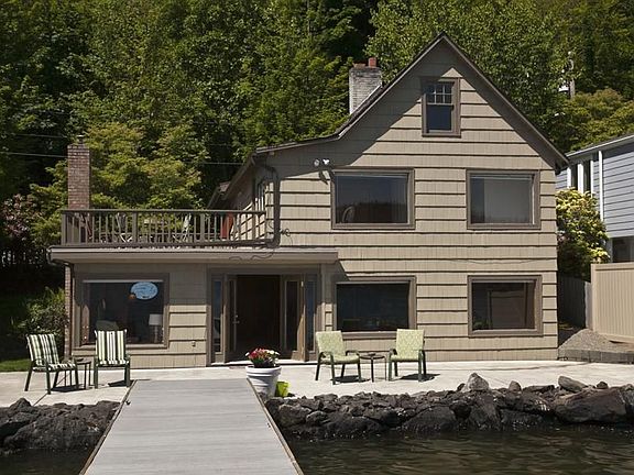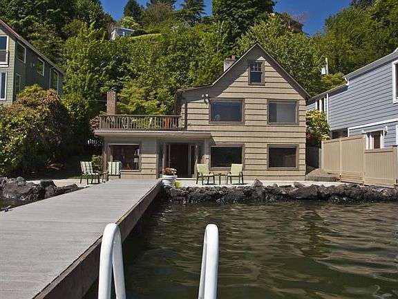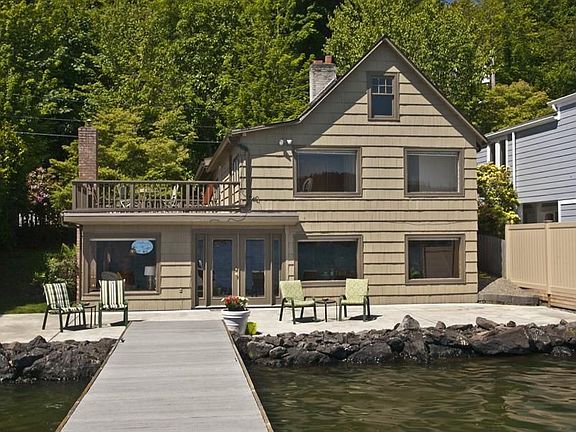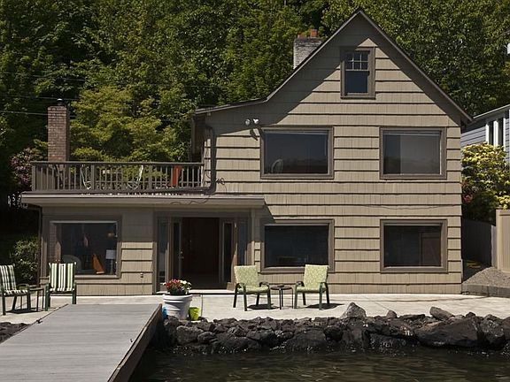 Vintage cape cod style. 60 feet of sparkling shorefront on Lake Washington.Private buoy.Level walk-out from the main floor living spaces to patio and updated dock with vista of Mt. Rainier.3 car carport level with street,extra parking on street.Burke-Gilman trail steps away.Below street entry.Side yard for gardeners.Rooftop deck accessed from 2 of the upstairs bedrooms.Bring the boat and water toys.Even on a rainy day,this home wraps itself around you,radiant pellet stove heat.Newer roof.Fenced.