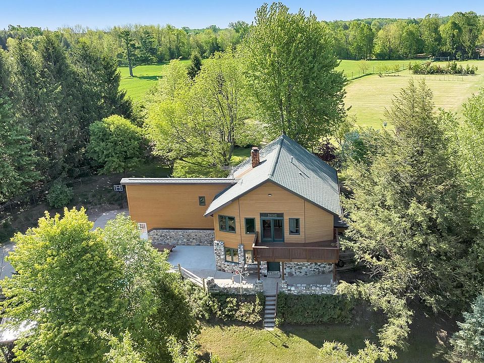 Custom built, well insulated & highly energy efficient 2 story home situated on 18+ private country acres w/a wildlife pond. open concept living room w/2 sided brick fireplace. Applianced kitchen w/custom cabinets, walk-in pantry & adjoining dining area. Main level office & half bath & laundry area. Upper level boasts the sun flooded family room w/hardwood floor & door to deck, 4 season room w/hook-ups for a hot tub & door to expansive patio. Updated roof and windows. 2 car attached garage + a 24x40 detached outbuilding w/conduit in place for in-floor heat from the outside wood burner. 14' lean to & a separate 13x32 hoop building. Area for horses. Excellent hunting opportunities plus planted fruit trees. All buyers must be pre-approved to view this home.