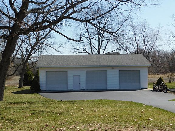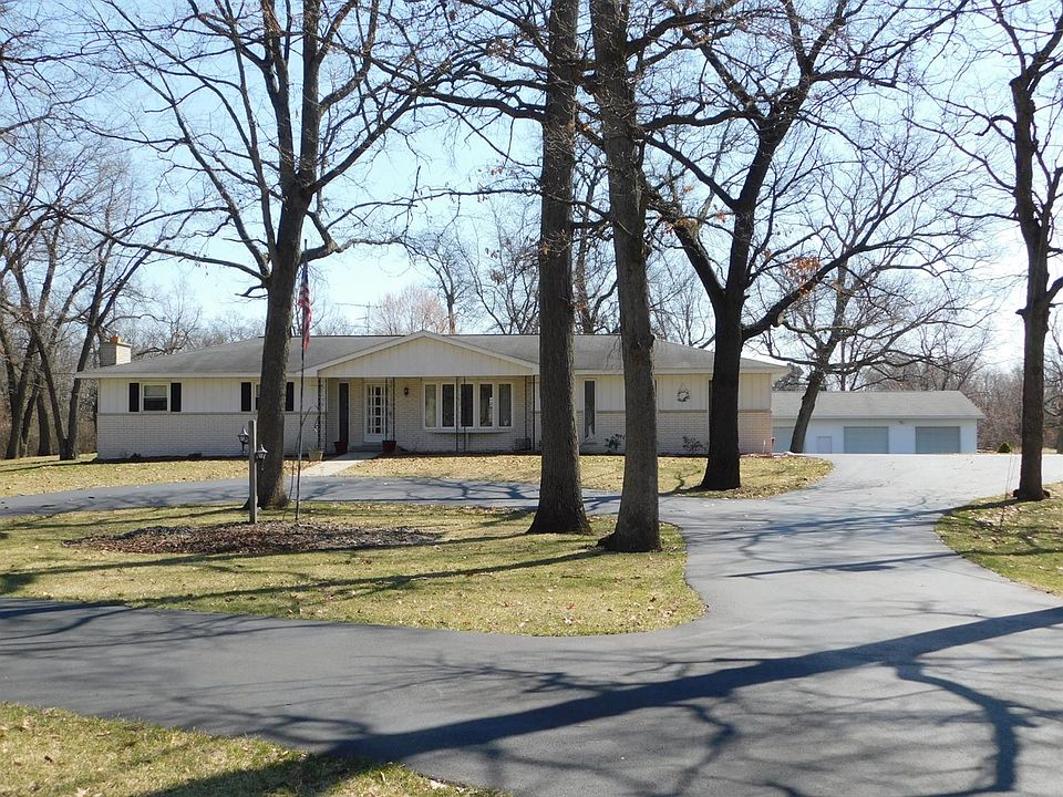 Here it is Folks! Super clean, well-maintained Ranch with Basement and an extra detached garage(one bay heated and on its own well). All the features you're looking for, plus set back on 3 ACRES in a park-like setting. Lots of room for parking, toying or simply garaging your cars. Walk inside and you'll feel right at home. Nice wood beamed Cathedral ceilings, hardwood floors, sunken Living Room overlooking Kitchen and a 4-Seasons Room. Great for family gatherings. Basement is cozy with a Den, wood burning fireplace, Bedroom/Office, and an additional 19x14 space that is ideal for a Game Room. Basement has 2-way entry. ADT security system with window and door sensors. This is a keeper. Schedule your showing today.