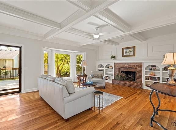 - Features: Built-in Features, Ceiling Fan(s), Fireplace, Wood Floor