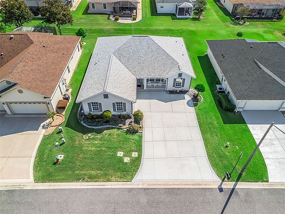 Stonecrest is a 55+ gated golf course community with all the amenities and 4 pools (one indoor), and just a Bridge Away By Golf Cart To The Villages! Stunning Concrete Block and Stucco 3/2 Custom Dogwood with a 2 Car Garage, and Painted concrete driveway & walkway. ROOF 2022, Freshly Painted Interior. As you enter into the home you are greeted by an Open Concept Floor Plan, Vaulted Ceilings, and a Gorgeous Dining area featuring an elegant Tray ceiling, and Upgraded Light fixture. The Dining area opens to the Huge Living area! The Light and Bright Kitchen is perfect for entertaining family and friends with its Large Eat -In area featuring entry to the Lanai, Tile Backsplash, White Appliances, Wood Cabinets, Pantry Closet, and Open Concept Design, it is sure to be the favorite gathering place! The Luxurious Primary Suite boasts a Private Entry to the Lanai, a Walk in Closet and En Suite Bathroom, featuring a 2 Vanity, Private Water Closet, Linen closet, Soaking Tub and Walk in Shower. The two additional bedrooms feature nice size built in closets and, provides plenty of convenience, and comfort for your guests. The 2 Car Garage offers plenty of space for storage, and has Epoxy flooring. Stonecrest is a 55+ gated golf course community with all the amenities, pools, pickleball courts, softball, 18 hole championship golf course, Broad Stripes Golf & Social Club and over 80 different clubs to join! It is a community with Private Roads and 24 Hour Security! As a private gated golf course community, you can expect a high level of privacy and security. Overall, this home offers a combination of Tremendous Outdoor Space, luxurious features, a desirable location, and a secure community setting. A WONDERFUL LIFESTYLE AWAITS YOU IN STONECREST!