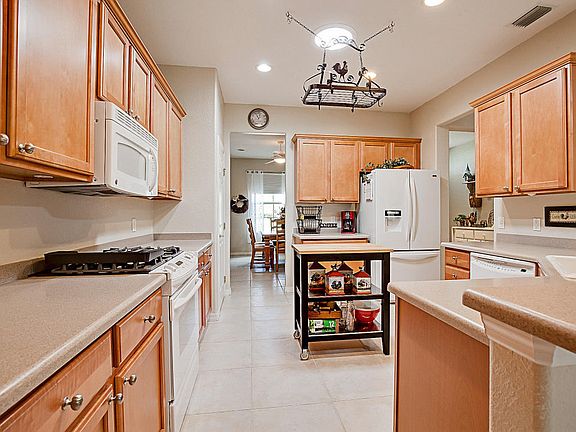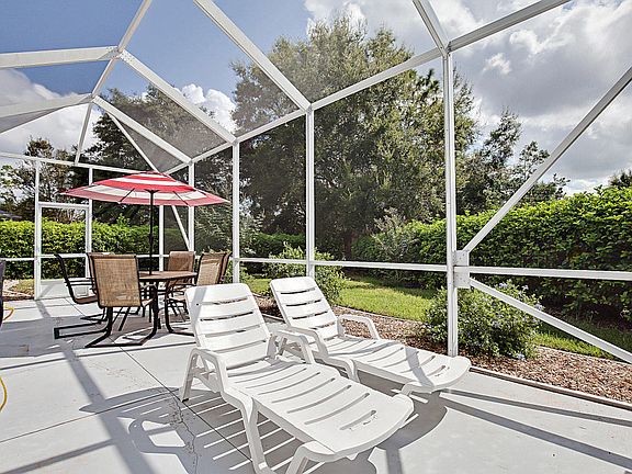UPGRADED WELL MAINTAINED HOME ON PRIVATE LOT IN DEL WEBB GOLF & COUNTRY CLUB. Welcome home to this beautifully upgraded 3/2 Hanover on private lot, home boasts extended garage, private irrigation well (2008), 20" ceramic tile throughout, on-demand hot water, gas stove, gas hot water & heat, upgraded maple cabinetry throughout, large walk-in shower in master bath, Corian counters, enclosed lanai (2012), patio with birdcage, concrete curbing, interior painted neutral colors. Gas golf cart available. Full list of upgrades in home. Refrigerator on lanai does not convey. Monthly HOA fee $125.00 includes security, common area maintenance, trash removal and use of all the amenities.