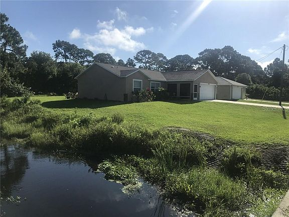 3 bedroom 2 bathroom some nice custom feature walls built in 2018. Nice well taken of located on fresh water canal only one neighboring home Nice neighbors. Has screened in front porch and backyard screened in lanai with paver pouch area. Fully landscaped. Electric avg $70 month, water $35. No flood insurance required. Couple minutes to home depo, Publix, 10 minutes to Englewood beaches.