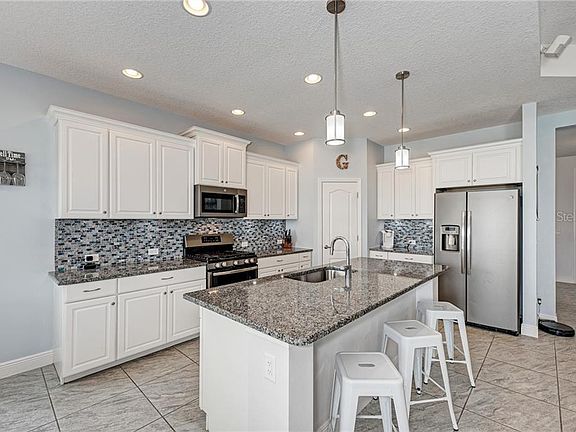 This Neal built 2016 White Sands II is move in ready and features an extra deep 24ft garage, so bring your oversized SUV's or small boat. Eagle Trace is a gated maintenance free community located minutes from all east county has to offer. This home features 3 bedrooms 2 baths + a Flex room that could be used as an office, formal dining room or play room. This home has an open floor plan with a spacious kitchen overlooking the living room, breakfast nook and out to the covered patio. The kitchen includes all stainless appliances, granite counters, custom backsplash and a large walk-in pantry. All floors in the main living area are tile with carpet in the 3 bedrooms. The spacious master suite features large windows allowing natural light to pour in...a large size walk-in closet and nice size wall closet for additional storage. The master bath includes dual sink vanities separated by a walk-in shower enclosure and a separate water closet. This home also features a relaxing covered front porch perfect for a set of rocking chairs to enjoy a quiet evening. The back covered patio overlooks a large backyard and has plenty of room for your own pool with scenic views of the pond. Eagle Trace features a fantastic community pool area w/cabana, spa, tennis court, playground and even a private dog park. All this and you are minutes to Lakewood Ranch, I-75 for easy commutes north and south, Malls, several beaches and the Tampa Bay area. Eagle Trace has NO CDD fees!! Priced below new construction for same home