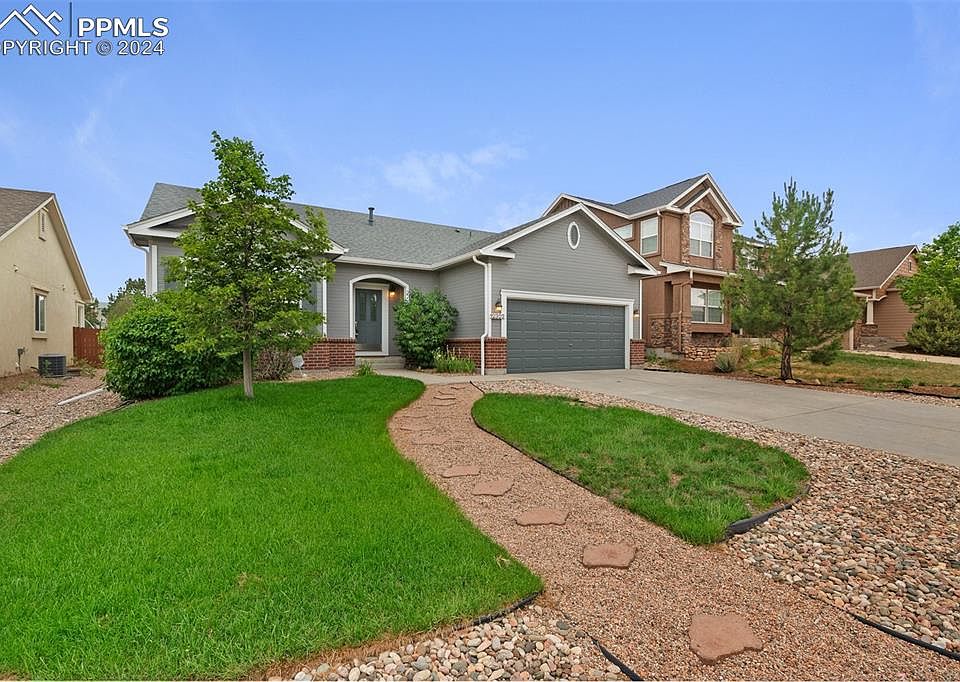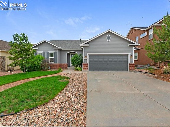 Discover an incredible opportunity to own this immaculate ranch home in the heart of Meridian Ranch! As you approach, you'll be greeted by appealing landscaping, a spacious driveway, and a 2-car garage. This elegant home features rich cherry wood laminate flooring throughout most of the main level, with abundant natural sunlight streaming through large windows. The massive kitchen is an entertainer's dream, offering endless counter space and cabinetry, stainless steel appliances, a breakfast bar, and a walk-in pantry. The adjoining dining room provides scenic views of the well-manicured backyard and the nearby Fairway Heights Park. The spacious living room is perfect for gatherings, whether for movie nights or cozying up by the brick fireplace. The main floor boasts a rare primary bedroom with access to the outdoor patio and an en suite bathroom featuring a seamless glass-door shower with tile surround, built-in soap cubbies, dual vanities, and an enormous walk-in closet. The private laundry room is equipped with electric hookups, a large utility sink, and direct entry to and from the garage, ensuring no muddy shoe prints throughout the home. The main level also includes an additional bedroom or home office and a full bathroom. The finished lower level is an entertainer's paradise, featuring an expansive recreational room, wet bar, three bedrooms, and a full bathroom. Upgrades include a new roof, exterior paint, a tile bar area and laundry room, a radon system, an automatic sprinkler system, and updated bathrooms. Enjoy close proximity to Meridian Ranch's incredible parks, a golf course, the YMCA, shops, restaurants, and four military installations. The opportunities are endless in this must-see home, ready for you to call it your own! Note: Three virtually staged photos are included in this listing.