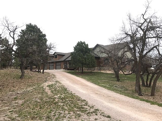 Don't miss out on this beautiful custom built home in Spruce Mountain Estates. Home is situated on a beautiful 5.22 acre lot with many trees, amazing views of Bear Butte, and an abundance of wild life. There are 4 bedrooms and 2.5 baths including a large master bath with walk in shower and double vanity. In the master bedroom you will also find his and her walk in closets as well as a walkout door to a large 10x19 covered deck. The living room has a gas fireplace and floor to ceiling windows that show off the amazing view of Bear Butte. The kitchen has everything you need with 2 sinks, custom cherry cabinets, wine rack, bill pay center, and large walk in pantry. There are walk out doors in both the living room and dining room. Loft area above garage is mostly finished with plumbing and insulation!! . Many mature trees throughout property!! Located between Sturgis and Spearfish!! Call today for a showing!