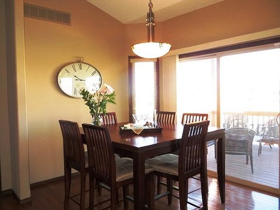 Gorgeous 5 bedroom 3 bath home on lake lot is a must see! This home offers split bedroom floor plan with beautiful features throughout the home. Living room has vaulted ceilings, two way fireplace, and is adjoined with lovely dining area, next to kitchen which boasts granite countertops, large walk in pantry, eating bar, and wood floors. All Kitchen appliances are staying. Master bath offers large walk in closet, dual vanities, and separate whirlpool tub and shower. The large fully finished basement offers a large family room with plenty of room for entertaining, wired for surround sound, with a large wet bar with microwave, fridge, and plenty of custom cabinets for wine storage. View out windows and corner gas fireplace make this a perfect area to entertain. Enjoy the peace and quiet on this lovely lake lot property on a quiet cul-de-sac. This home features an alarm system, 3 car garage, ceiling fans, and covered composite deck. Other features include front door with lead glass, Hardi concrete siding, and lake access. This former Parade of Homes home is one you dont want to miss! Call for your private showing today!