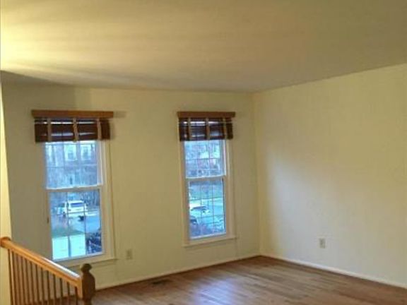 Exceptional end townhome in quiet neighborhood. Open floor plan. Enter to living room, dining room kitchen and adjacent area that can be used for eat in kitchen or main floor family room. Hardwood and luxury vinyl on main floor. Continue out main floor to large deck ready for relaxation and grilling. Upper level features huge master with luxury bath with skylight. Two additional bedrooms with hall full bath. Lower level includes large family room, wood burning fireplace, half bath, large laundry room and loads of storage. Access to garage from the lower level or from the street. Total of 3 parking places: garage, in driveway and one permit space. Large fenced backyard. Great schools and access to all highways for easy commuting. Available immediately.