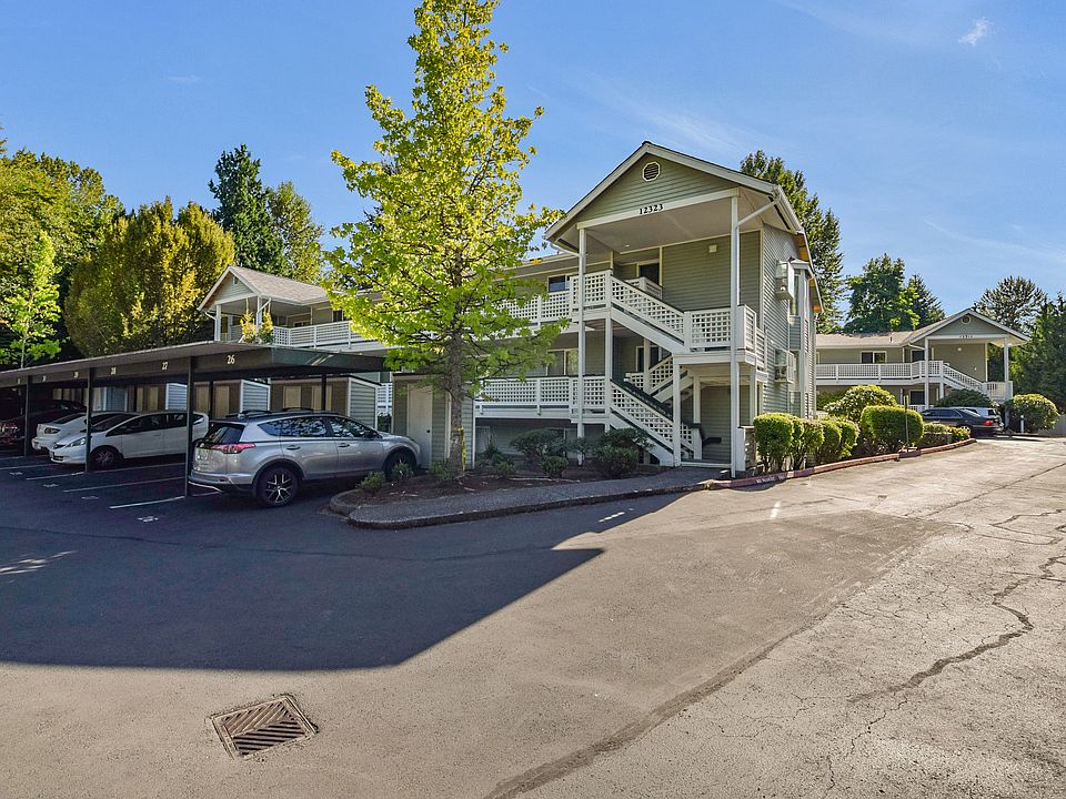 Excellent Kirkland Location ~ Close to Everything! This 2 Bed / 1.75 Bath top floor, end unit is completely move-in ready with Brand New Carpet & Brand New Paint! Vaulted ceilings, skylights and a lovely gray & white color palette creates light and bright interiors. Enjoy excellent features rarely found: True primary ensuite, full-sized washer & dryer, both bedrooms are spacious, deck off of living room, wood-burning fireplace, plenty of storage and the kitchen is HUGE! Covered parking stall and storage locker very close to the unit! Located in the heart of Kirkland/Rose Hill and just minutes to downtown Kirkland, Google, Microsoft & Totem Lake, get anywhere quickly from here. ENTIRE COMPLEX JUST RE-ROOFED (assessment paid on this unit).